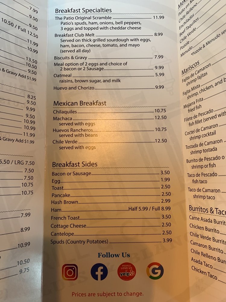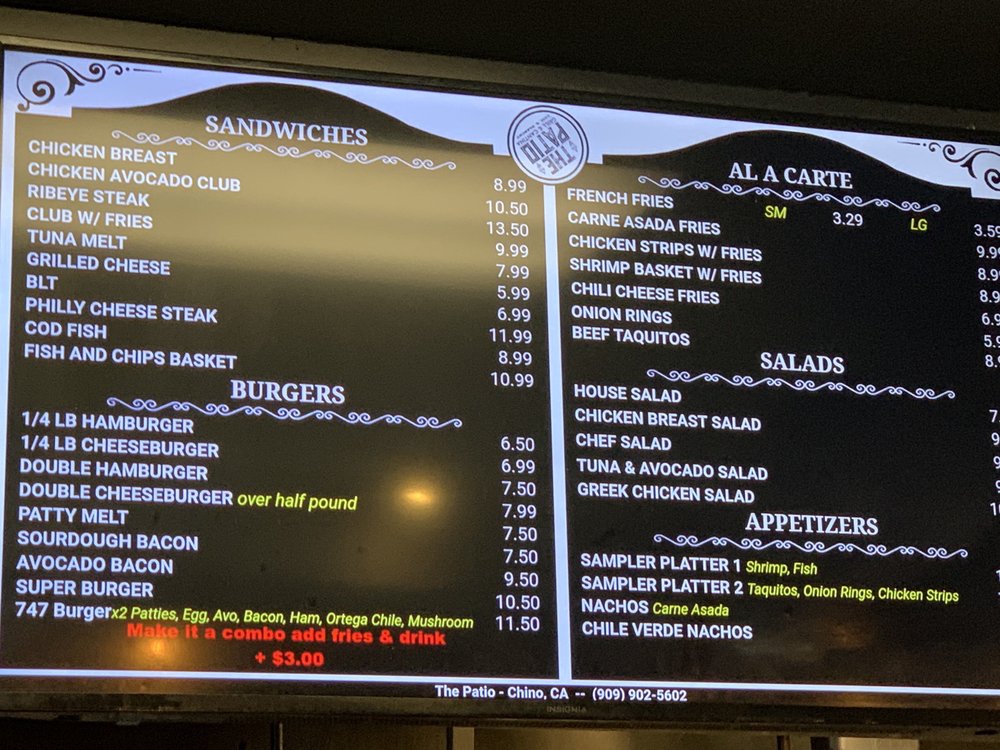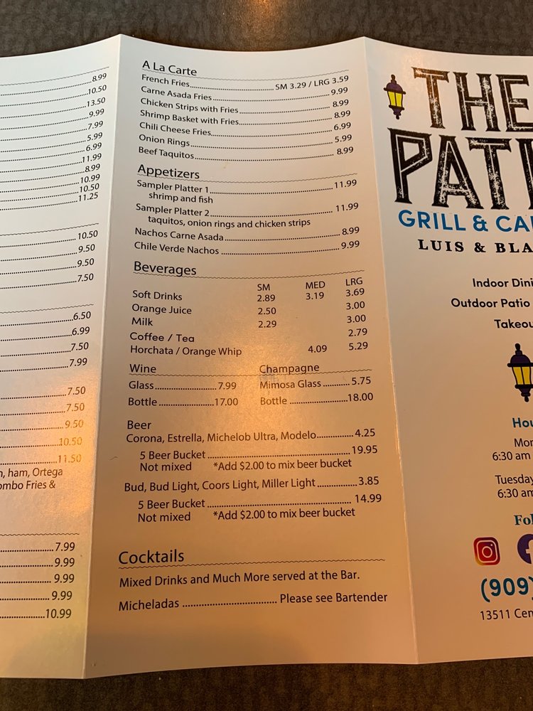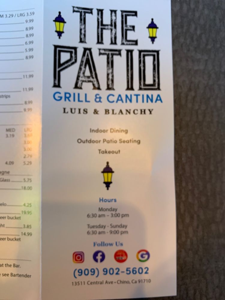 The Patio Grill & Cantina offers a unique blend of American and Mexican cuisine in a casual and friendly environment. Located in Chino, CA, this restaurant provides a range of amenities, including outdoor seating, happy hour specials, and a full bar. Customers rave about the delicious dishes, such as chilaquiles verde, breakfast burritos, carne asada nachos, taquitos, and breakfast burritos. The staff is known for their exceptional service and friendliness, making every dining experience enjoyable. The salsa bar and hot house brew add a special touch to the meal. Whether you're looking for a hearty breakfast or a satisfying lunch, The Patio Grill & Cantina is a must-visit spot. The cozy atmosphere and tasty menu options will keep you coming back for more.